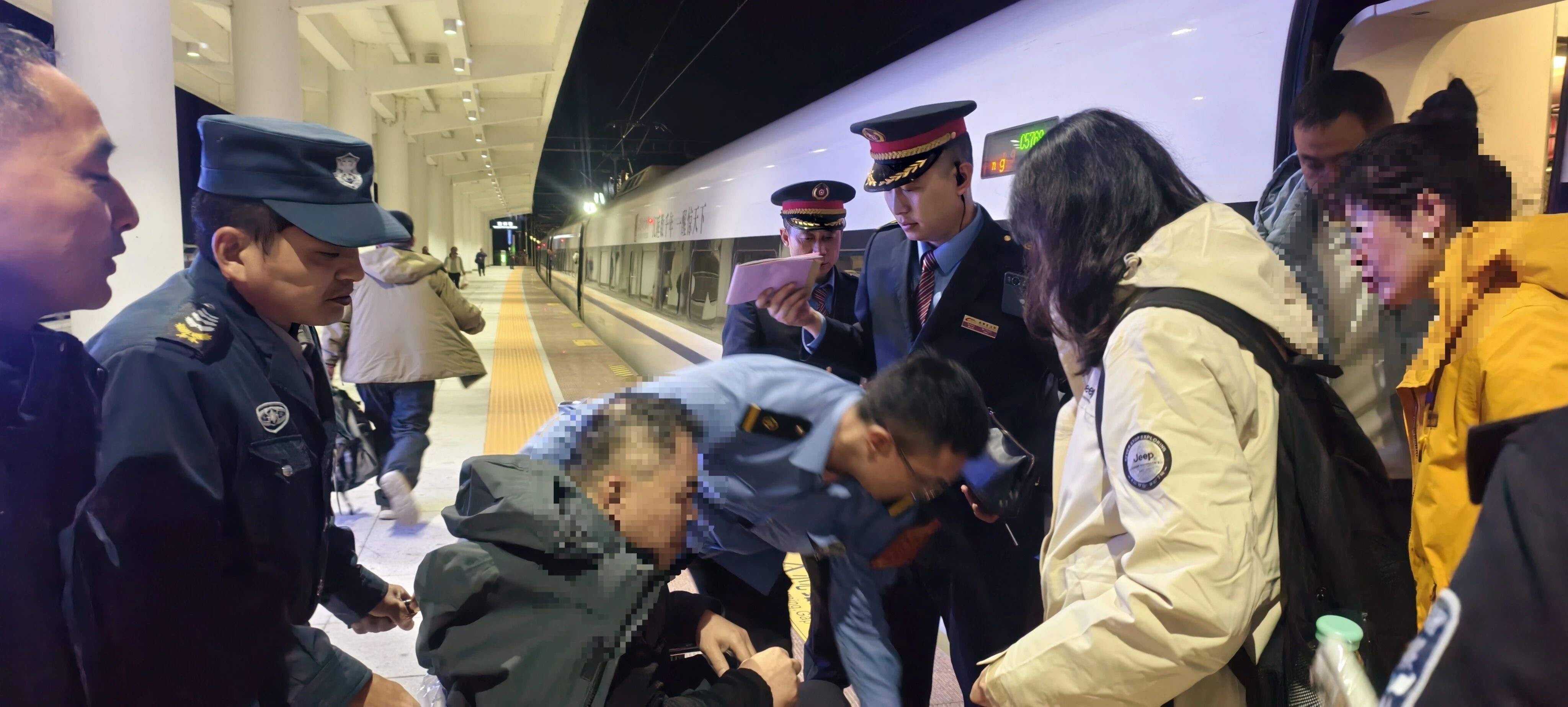 列车上,几名医务工作者闻讯前来,通过问询病史、测量血压等方式对曾先生进行了初步诊断。由于曾先生曾接受过心脏搭桥手术,鉴于当下的病情,医护人员建议他立即下车就医治疗。